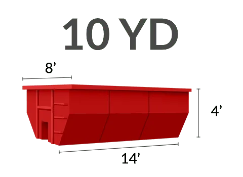 The 10-yard is the smallest roll-off dumpster we offer. They are the perfect size to fit in even the smallest of residential spaces yet can hold hold plenty of junk! Our 10-yard dumpster is the ideal solution for small cleanout projects to mild home renovations.