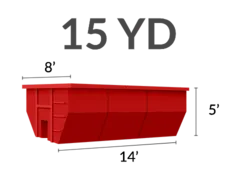 Our 15-yard dumpster is our mid-sized dumpster rental option. This size is perfect commercial jobs, home renovations, landscaping projects, and more. This heavy-duty dumpster can hold 2 tons of junk safely and reliably.