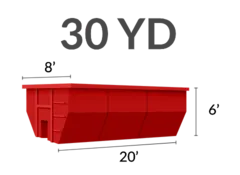 Our 30-yard dumpster is our largest bin option. This dumpster can assist with any size cleanup, commonly rented for commercial and residential use. Great for demolition, roofing, and much more.